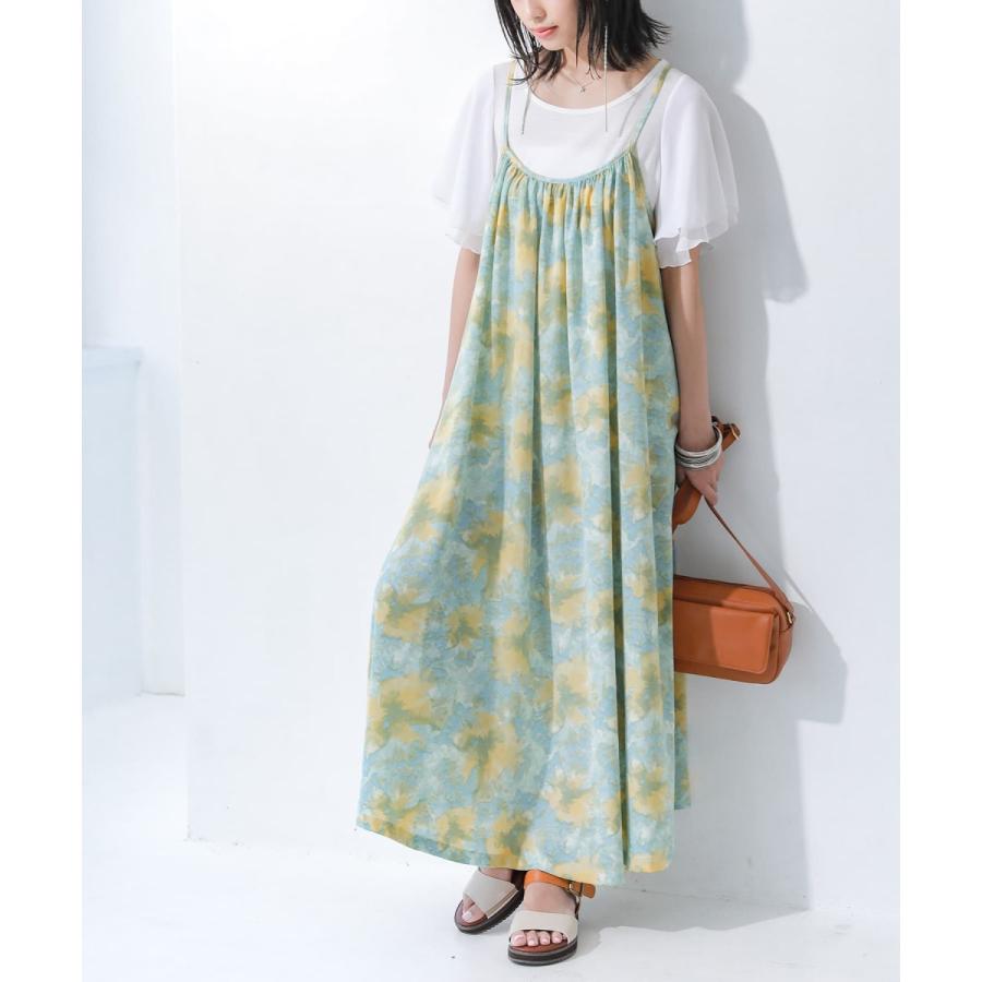 ロング ワンピ レディース 春夏 ノースリーブ キャミワンピ Aライン ギャザー 重ね着 タイダイ柄ロングキャミワンピース メール便不可 Wfn0315 オシャレウォーカー 通販 Yahoo ショッピング
